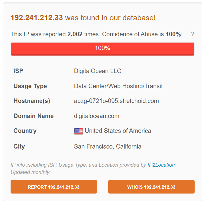## *192.241.212.33* IP 주소 분석